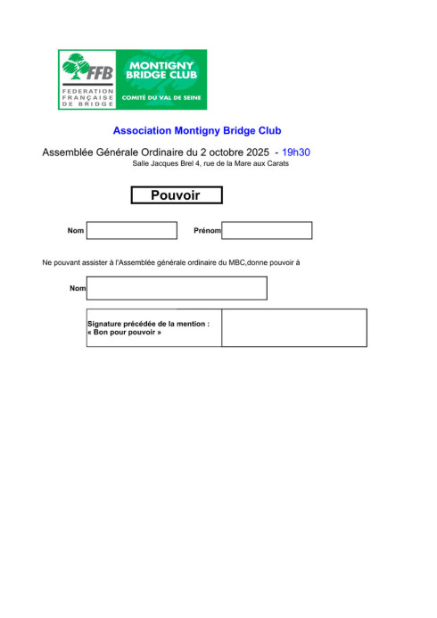 MONTIGNY BRIDGE CLUB 4 Rue de l'ancienne Mairie